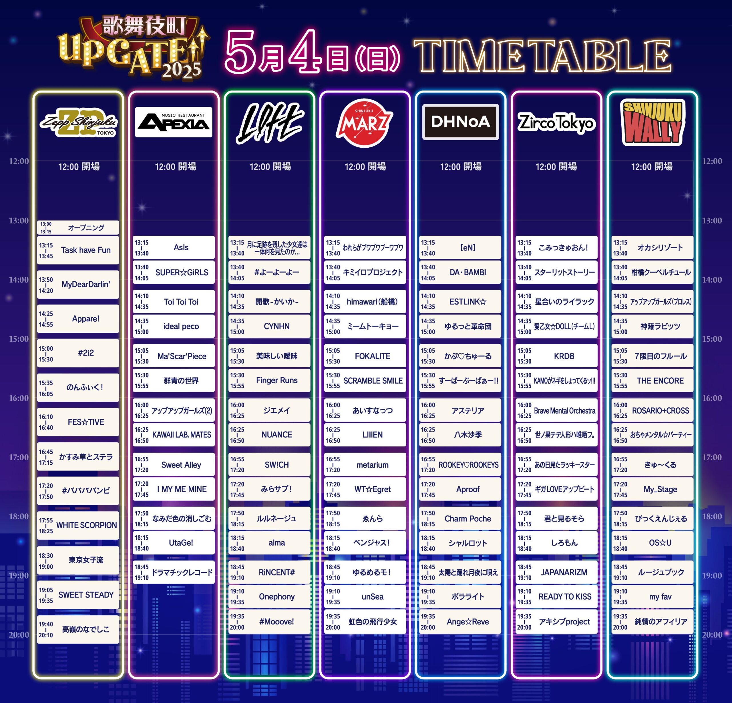 Zepp Shinjuku (TOKYO)/APEXIA/新宿LOFT/新宿MARZ/新宿DHNoA/新宿WALLY/Zirco Tokyo/歌舞伎町タワーステージ