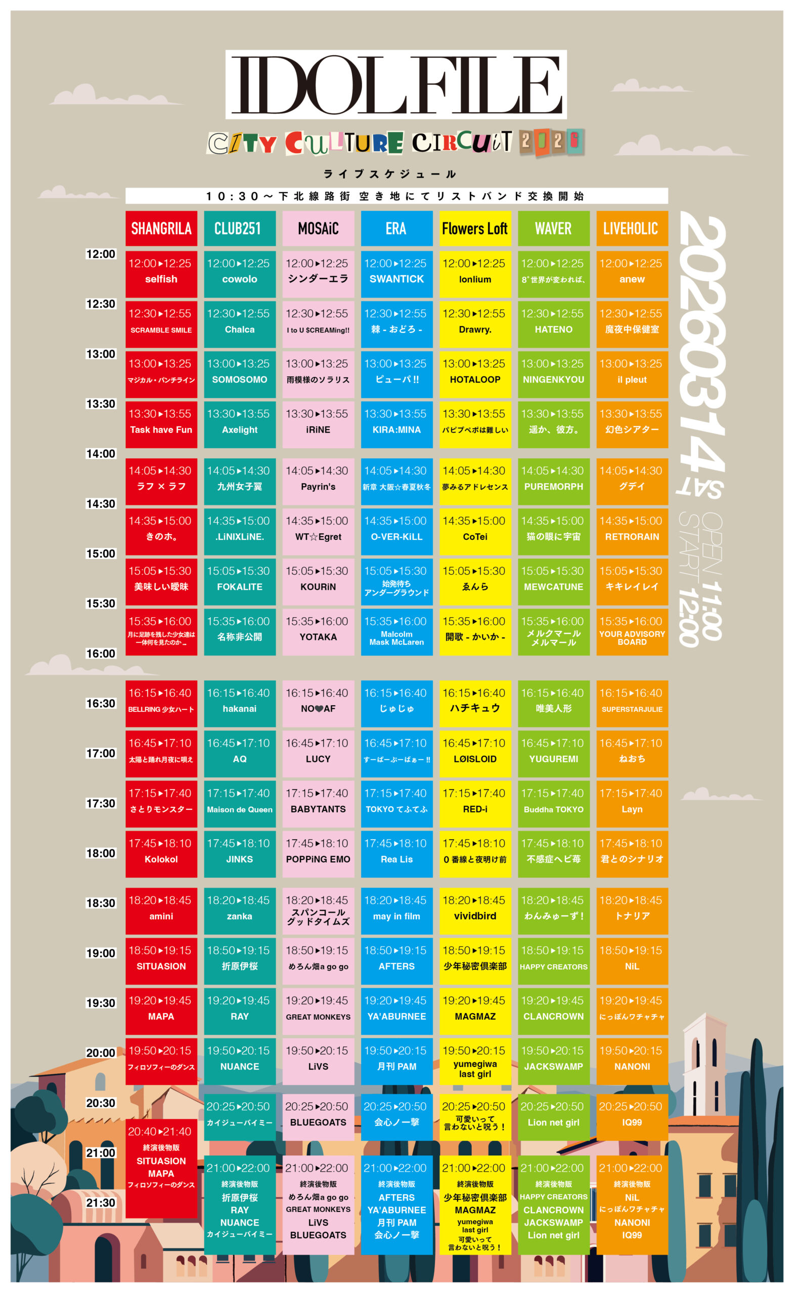 下北沢シャングリラ / MOSAiC / Flowers Loft / CLUB251 / WAVER / ERA / LIVEHOLIC / ADRIFT