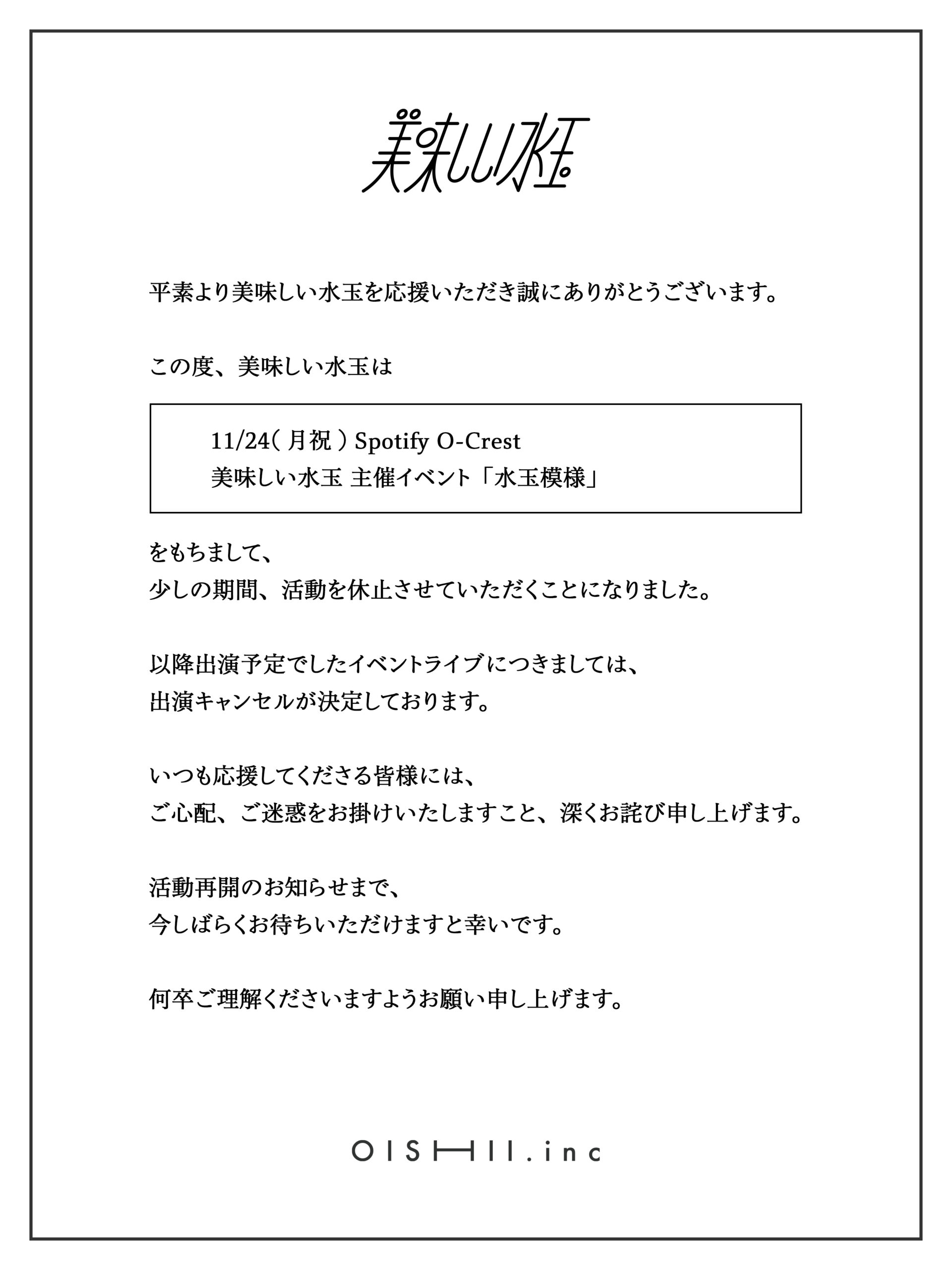 美味しい水玉 活動休止のお知らせ